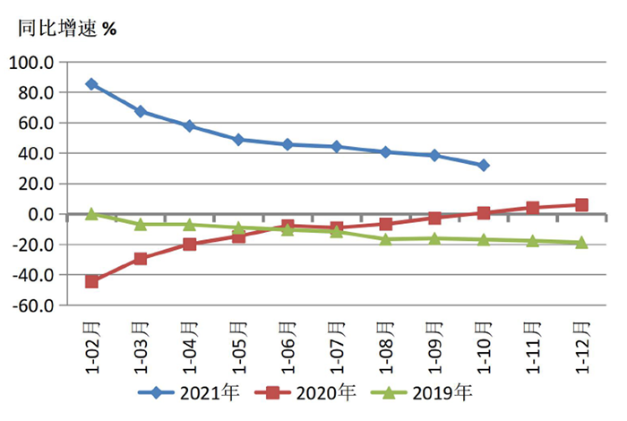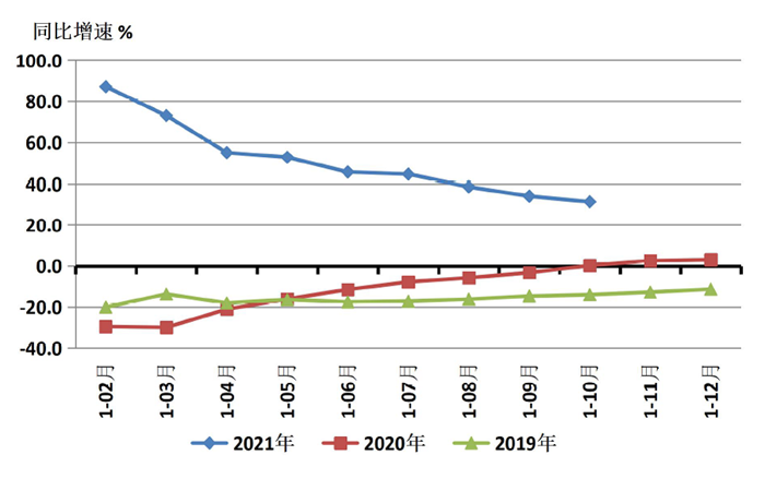 2021年1-10月,行業整體運行仍保持平穩增長,受上年基數因素影響,各項主要指標同比增速繼續逐月回落,但同比增幅仍然較高。