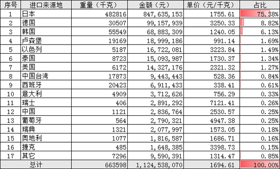 刀片進口額(41.24億元)是出口額(19.68億元)的2.1倍。進口刀片與出口刀片金額之比小于以往數據,涂層刀片出口額同比增長26.4%(見表2),而進口額同比增長10.53%(見表4),出口增長高于進口增長。
