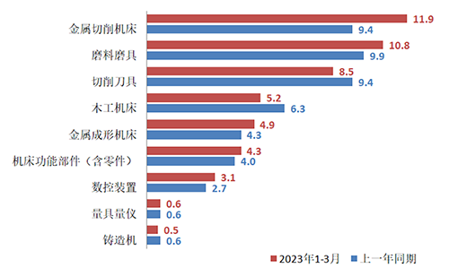 2023年一季度,機床工具行業出口在去年高基數的基礎上持續增長,且除切削刀具、木工機床和鑄造機以外,其他商品的出口額都有所增長。其中,金屬加工機床的增長尤為突出,并呈現出貿易順差。