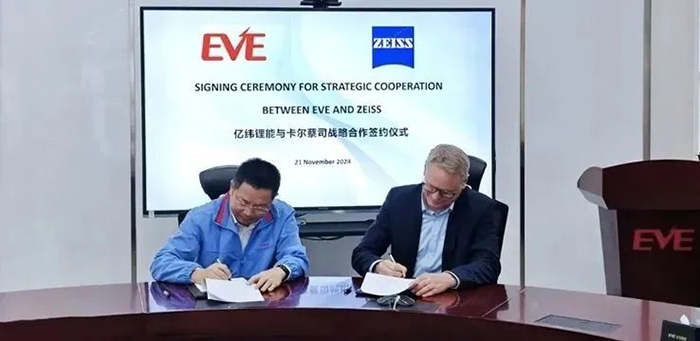 2024年11月21日,蔡司公司和億緯鋰能在廣東省惠州市簽訂戰(zhàn)略合作協(xié)議,擬憑借億緯鋰能在電池創(chuàng)新研發(fā)、大規(guī)模生產(chǎn)的實操經(jīng)驗,及蔡司在全球工業(yè)質(zhì)量領(lǐng)域的多年積累,合作培養(yǎng)電池質(zhì)量人才,從電池材料研發(fā)、電極生產(chǎn)、電芯生產(chǎn)、模組組裝的電池研發(fā)和生產(chǎn)全流程上,合作提升電池質(zhì)量解決方案,制定電池質(zhì)量行業(yè)標(biāo)準,共同推進全球電池行業(yè)高質(zhì)量發(fā)展。