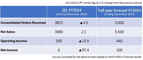 4.德馬吉森精機2024年第三季度銷售額增長但利潤下降