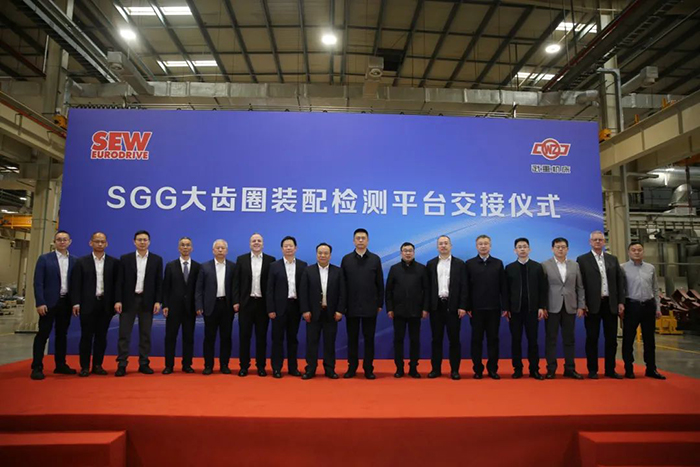 1月14日,由武漢重型機(jī)床集團(tuán)有限公司與賽威傳動(dòng)(中國(guó))公司合作研發(fā)的SGG大齒圈裝配檢測(cè)平臺(tái)交接儀式在天津舉行,賽威中國(guó)執(zhí)行董事長(zhǎng)張勝利,武重黨委書記、董事長(zhǎng)丁劍出席儀式。