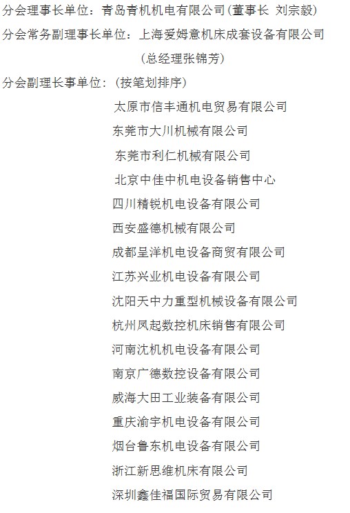 中國機床工具工業協會經銷商分會于 2016 年 4 月在上海成立。 會員單位是由全國各地具有較大規模和影響力的專業機床經銷商組成,目前會員單位多達 100 余家,遍及中國 20多個省份(市) 地區。
