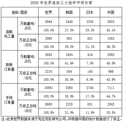 2020年我國造船三大指標(biāo)保持世界領(lǐng)先