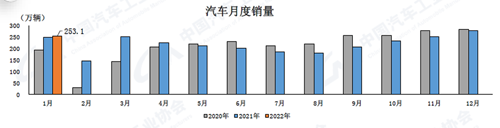 1月,汽車產銷分別達到242.2萬輛和253.1萬輛,環比下降16.7%和9.2%,同比增長1.4%和0.9%。