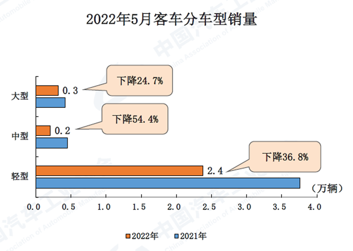 1-5月,商用車產(chǎn)銷142.2萬輛和142.1萬輛,同比下降39.4%和41.9%。在商用車主要品種中,與上年同期相比,客車和貨車產(chǎn)銷均呈較快下降。
