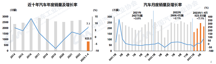 4月汽車產銷量分別達到213.3萬輛和215.9萬輛,環比分別下降17.5%和11.9%,同比分別增長76.8%和82.7%。