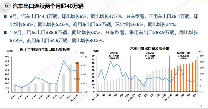 9月,汽車產銷分別達到285萬輛和285.8萬輛,環比均增長10.7%,同比分別增長6.6%和9.5%,產銷量均創歷史同期新高。1-9月,汽車產銷累計完成2107.5萬輛和2106.9萬輛,同比分別增長7.3%和8.2%。預計伴隨各項促消費、穩增長政策持續落地,效應不斷累積,將對四季度汽車市場形成有力支撐,有助于實現全年穩增長目標。