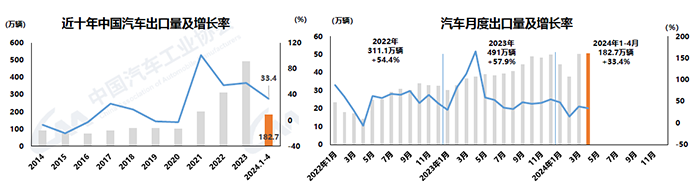 1-4月,汽車出口182.7萬(wàn)輛,同比增長(zhǎng)33.4%。分車型看,乘用車出口153.9萬(wàn)輛,同比增長(zhǎng)34.8%;商用車出口28.8萬(wàn)輛,同比增長(zhǎng)26.5%。