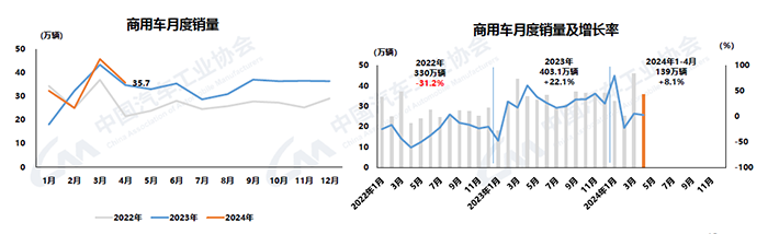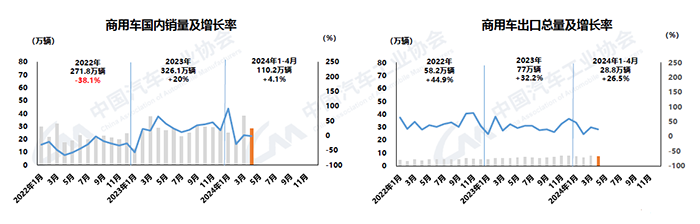 1-4月,商用車產(chǎn)銷累計(jì)完成135.4萬(wàn)輛和139萬(wàn)輛,同比分別增長(zhǎng)3.9%和8.1%。