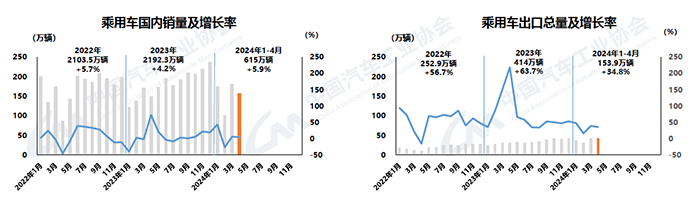 1-4月,乘用車產(chǎn)銷累計(jì)完成765.8萬(wàn)輛和768.9萬(wàn)輛,同比分別增長(zhǎng)8.6%和10.6%。