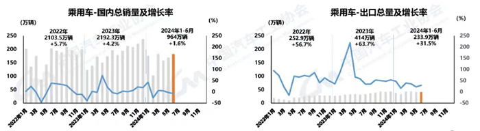 6月,乘用車國內銷量181.2萬輛,環比增長8%,同比下降7.4%;乘用車出口40.3萬輛,環比增長1.4%,同比增長29.1%。其中,傳統燃油乘用車國內銷量89.3萬輛,比上年同期減少37.1萬輛,環比增長3.5%,同比下降29.3%。1-6月,乘用車國內銷量964萬輛,同比增長1.6%;乘用車出口233.9萬輛,同比增長31.5%。