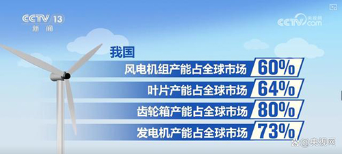 我國風電機組產能占全球市場的60%,葉片產能占全球市場的64%,齒輪箱產能占全球市場的80%,發電機產能占全球市場的73%。2023年,6家中國風電整機商排名全球前十,市場份額超過50%。