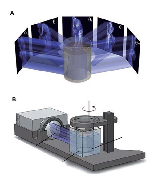 (3)CAL新型3D打印的靈感來(lái)源。基于CAL的新型3D打印技術(shù)的靈感來(lái)自醫(yī)學(xué)領(lǐng)域的計(jì)算機(jī)斷層掃描技術(shù)(CT),CT掃描從各個(gè)角度將X射線或其他類型的電磁輻射投射到體內(nèi),通過(guò)分析傳輸能量的模式來(lái)揭示物體的幾何形狀。
