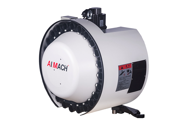 該產(chǎn)品通過模塊化可重構(gòu)的鏈?zhǔn)降稁旖Y(jié)構(gòu)設(shè)計方法,實現(xiàn)在保證刀庫容量增長的前提下,保證容刀排布的靈活性和空間利用率,刀庫的換刀效率提高。通過分析ATC的換刀過程和弧面凸輪分度機(jī)構(gòu)的傳動特點,以運(yùn)動仿真的方法,對弧面凸輪分度機(jī)構(gòu)的傳動精度展開研究。開展了自動換刀裝置結(jié)構(gòu)優(yōu)化設(shè)計技術(shù)研究。采用基于“質(zhì)量-輪廓-速度”智能柔性匹配的譜系化刀庫產(chǎn)品設(shè)計方法,保證了弧面凸輪運(yùn)轉(zhuǎn)精度和使用壽命。實現(xiàn)換刀速度基于刀具重量識別的自適應(yīng)調(diào)節(jié)。開發(fā)自動換刀裝置凸輪加工刀路仿真分析軟件,提高加工效率與精度。目前,BT40圓盤式刀庫廣泛應(yīng)用于航空航天、船舶、精密模具、精密機(jī)械等尖端產(chǎn)品制造領(lǐng)域。
