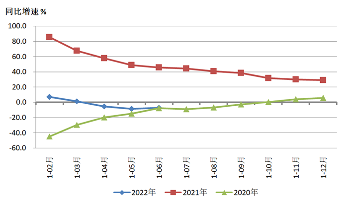 圖1是2022年1-6月與2021年、2020年重點(diǎn)聯(lián)系企業(yè)累計營業(yè)收入同比增速的對比。