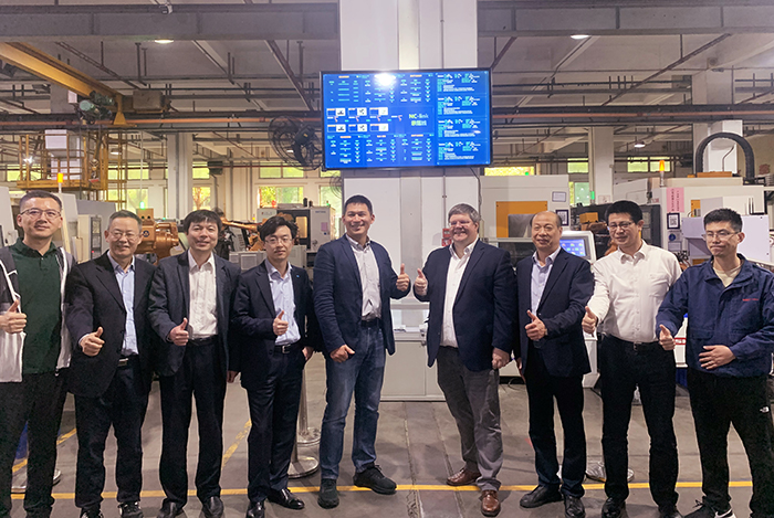 德國機床協(xié)會代表還赴廣州數(shù)控設備有限公司,參觀了通過NC-Link產(chǎn)品實現(xiàn)設備互聯(lián)互通的伺服電機端蓋生產(chǎn)線,以及攜匯機床研究院與廣州數(shù)控設備有限公司聯(lián)合研發(fā)的NC-Link內(nèi)置數(shù)控系統(tǒng)工程樣機,現(xiàn)場體驗了NC-Link產(chǎn)品的應用能力和價值。中國機床協(xié)會輪值理事長、廣州數(shù)控設備有限公司董事長何敏佳帶領參觀了公司的展廳、生產(chǎn)研發(fā)現(xiàn)場和產(chǎn)業(yè)園區(qū)。