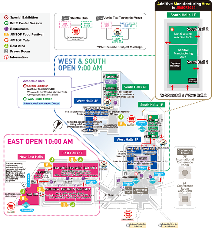 JIMTOF2024展會的展覽面積是118540m2(本屆展會使用東、西、南館),成為JIMTOF有史以來最大規(guī)模的一屆展會。其中,南館為新啟用的展館,主要展示部件、系統(tǒng)、增材制造展區(qū)、學(xué)校成果展、學(xué)生招聘區(qū)和國際協(xié)會區(qū)等,也作為開幕式的舉辦場地;東館主要是展示機床主機及相關(guān)部件;西館主要是展示切削刀具、磨料磨具、部件及軟件等。