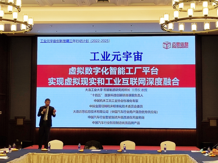 會(huì)議還邀請(qǐng)了大連邁思信息技術(shù)有限公司董事長(zhǎng)王德權(quán)教授作了題為“工業(yè)元宇宙——虛擬數(shù)字化智能工廠平臺(tái),實(shí)現(xiàn)虛擬現(xiàn)實(shí)和工業(yè)互聯(lián)網(wǎng)深度融合”的技術(shù)報(bào)告,對(duì)機(jī)床工具行業(yè)企業(yè)數(shù)字化轉(zhuǎn)型過程中需要注重技術(shù)融合創(chuàng)新,加強(qiáng)虛擬現(xiàn)實(shí)技術(shù)在工業(yè)領(lǐng)域的融合應(yīng)用創(chuàng)新,積極開展數(shù)字化虛擬工廠建設(shè)等問題進(jìn)行了案例分析和經(jīng)驗(yàn)分享,為在企業(yè)的數(shù)字化升級(jí)過程中,將數(shù)字孿生技術(shù)的應(yīng)用從研發(fā)設(shè)計(jì)、加工、裝配、檢驗(yàn)等生產(chǎn)環(huán)節(jié),向設(shè)備管理、遠(yuǎn)程診斷維護(hù)等服務(wù)環(huán)節(jié)滲透延伸,提出了寶貴經(jīng)驗(yàn)參考。大連元利流體技術(shù)有限公司董事長(zhǎng)高永剛作了題為“碳中和大背景下綠色機(jī)床之智能低碳高壓冷卻系統(tǒng)研討”的報(bào)告,就機(jī)床智能化在線測(cè)量解決纏屑、提高刀具使用壽命和加工精度等問題,交流了高壓冷卻技術(shù)的原理及優(yōu)勢(shì),以此引領(lǐng)機(jī)床產(chǎn)業(yè)綠色制造潮流,并提出了在行業(yè)內(nèi)實(shí)現(xiàn)全價(jià)值鏈碳中和的建議。